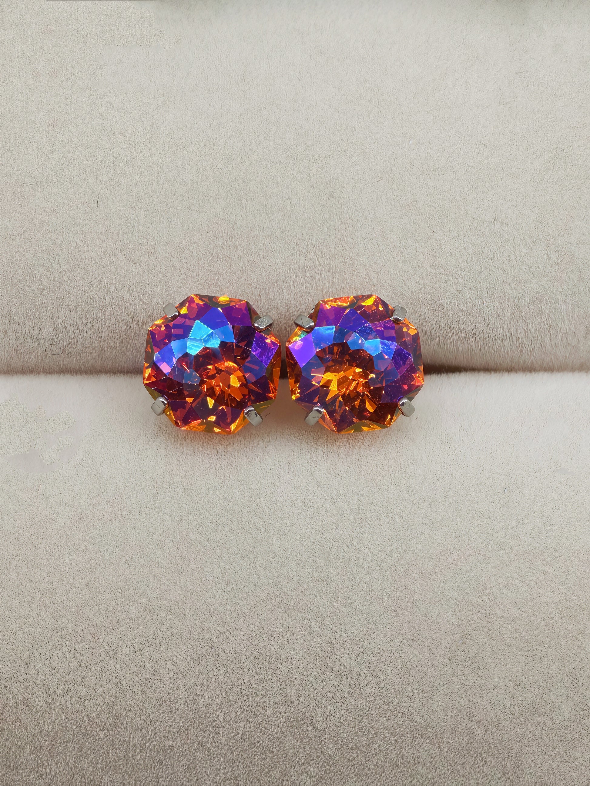 Amber Flame AB Firework-Cut Zircon Stud Earrings