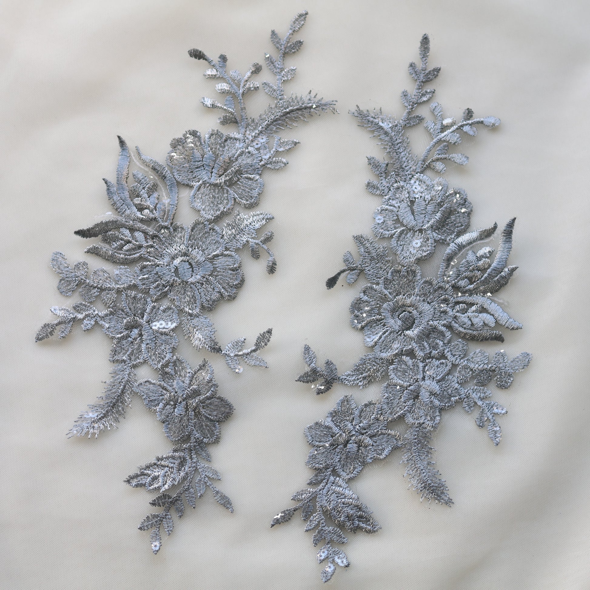 MM033 1 Pair Sequins Lace Flower Embroidered Patch